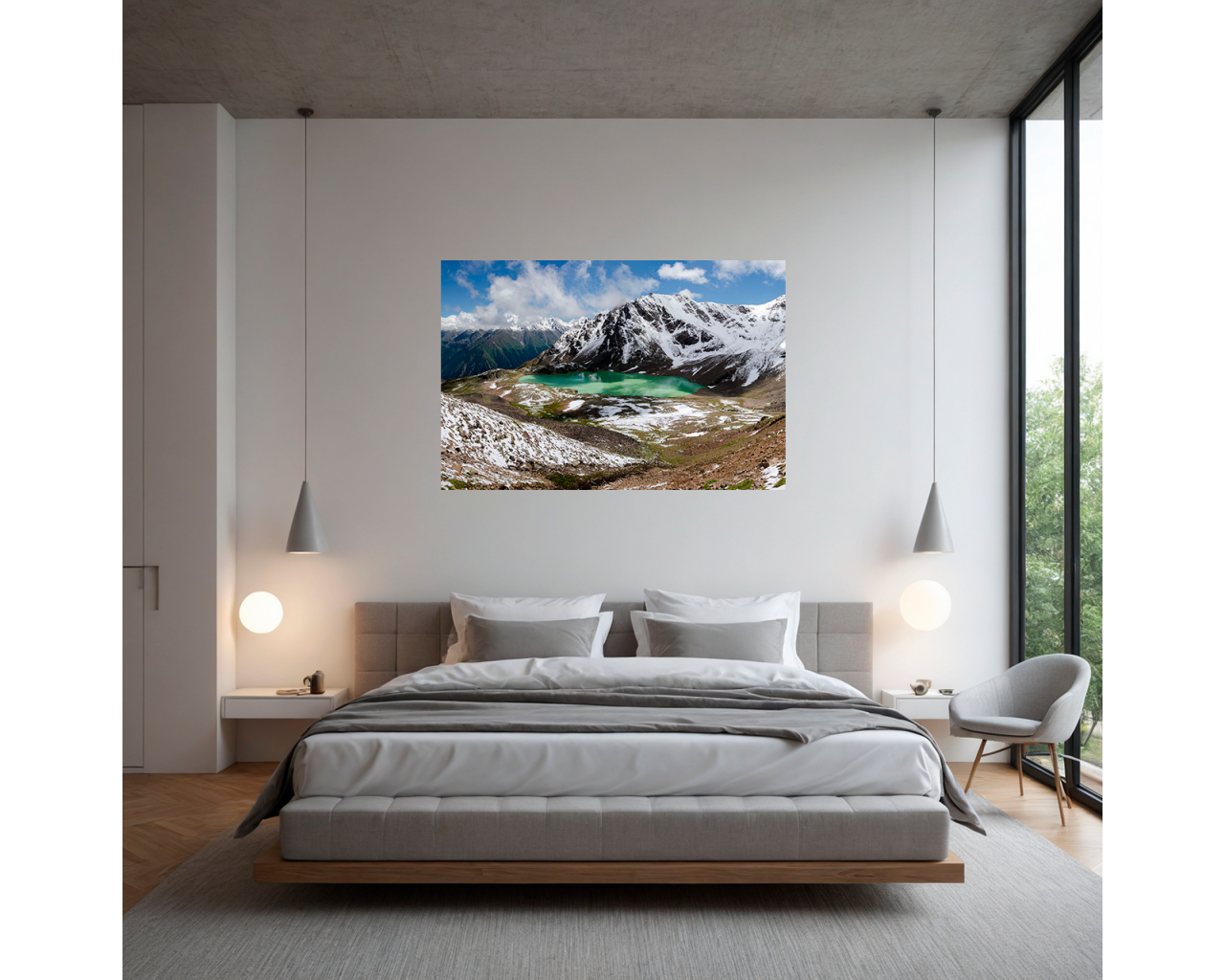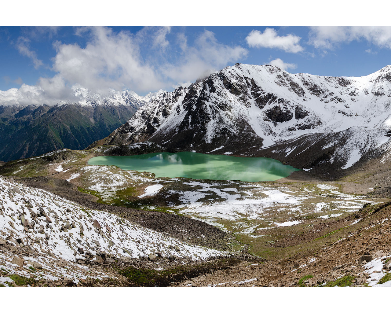 Снежные горы и озеро